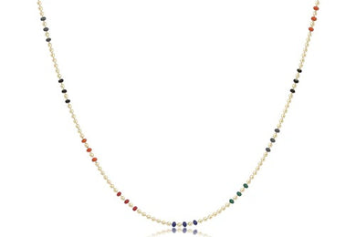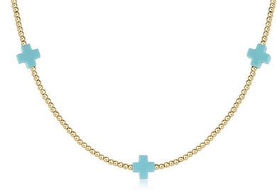 15" Choker Signature Cross Gold Pattern 2mm Bead - Turquoise