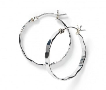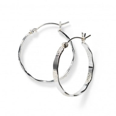 Sterling Silver Hammered Round Hoop Earring 25mm