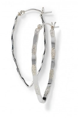Sterling Silver Hammered and Textured Pointed Oval Hoop Earrings 40mm
