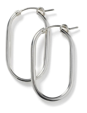 Sterling Silver Oval Hoop Earrings with Square Tubing 24MM