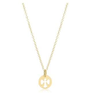 16" Necklace Gold - Guardian Angel Small Gold Disc