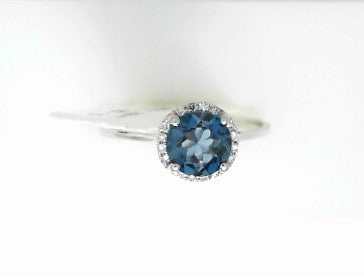 Ladies 14 Karat White Gold Fashion Necklace With = 1.00Tw Round Light Blue Topaz And = 0.05Tw Round Diamonds With 16" Chain