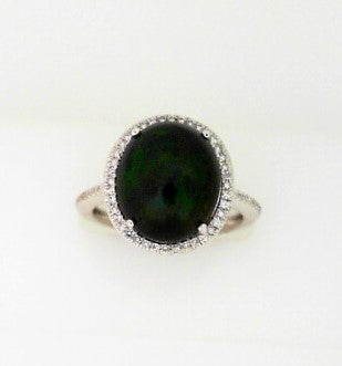 Ladies 14 Karat White Gold Fashion Ring With 3.00Tw Oval Black Opal And 0.17Tw Round H/I I1 Diamonds Size 6.5