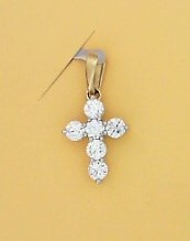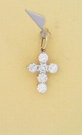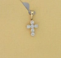 Ladies 14 Karat Yellow Gold Diamond Cross Pendant With = 0.10Tw Round H/I Si2 Diamonds with 18" Adjustable chain