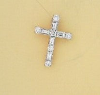 Ladies 14 Karat Yellow Gold Diamond Cross Necklace With = 0.83Tw Baguettes and Rounds G/H SI2 With 18" Chain
