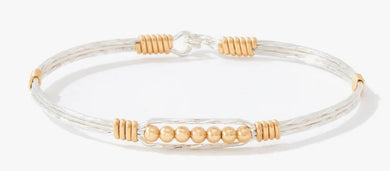Power Of Prayer Bracelet- Mirrored Sterling Silver with 14K Gold Artist Wire Wraps and Beads- Size 7.5