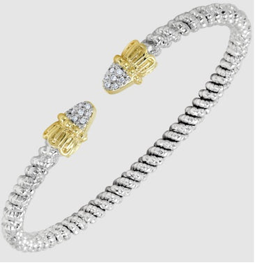 Ladies 14 Karat Gold And Sterling Silver Diamond Open End Bangle Bracelet 6MM With 0.09Tw Round G/H Si2 Diamonds