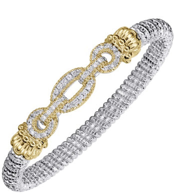 Metal: 14k Gold And Sterling Silver Diamond Weight: 0.19 Open Band Bracelet 6MM