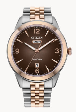 MENS TWO TONE ECO DRIVE ROLAN WR100 SSTRG BRAC BROWN DIAL