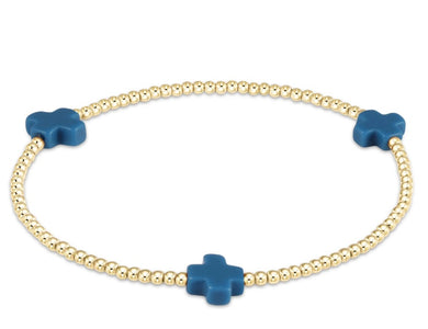 Signature Cross Gold Pattern 2mm Bead Bracelet- Cobalt
