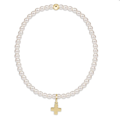 Classic Pearl 3MM Bead Bracelet - Signature Cross Gold Charm