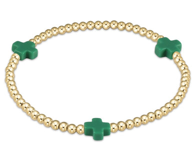 Signature Cross Gold Pattern 3MM Bead Bracelet - Emerald