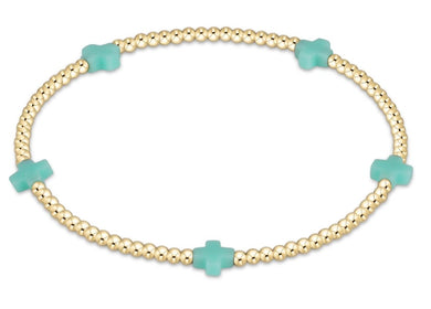 Signature Cross Small Gold Pattern 2MM Bead Bracelet - Mint