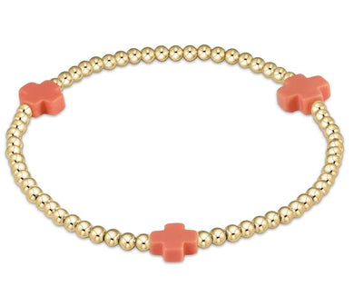 Signature Cross Gold Small 2mm Bracelet - Coral