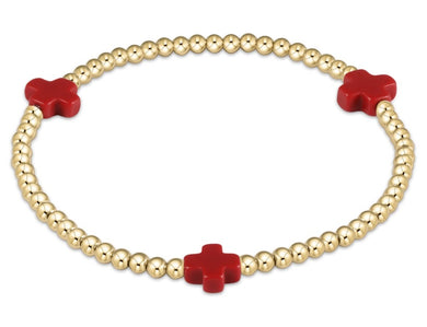 Signature Cross Gold Pattern 3mm Bead Bracelet-Red