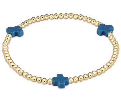 Signature Cross Gold Pattern 3mm Bead Bracelet- Cobalt