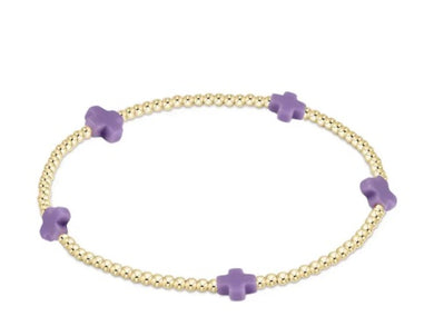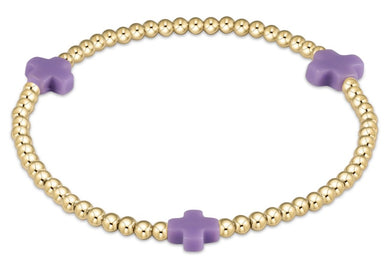 Signature Cross Gold Pattern 3MM Bead Bracelet - Purple
