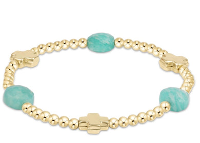 Signature Cross Admire Gold Pattern 3Mm Bead Bracelet - Amazonite