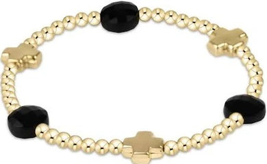 Signature Cross Admire Gold Pattern 3mm Bead Bracelet - Black Onyx