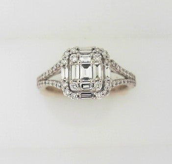 Ladies 14 Karat White Gold Diamond Engagement Ring With 0.35tw Baguette G/H SI2 Diamonds 0.37tw Round G/H SI2 Diamonds = 72 Points TCW Size 7.5