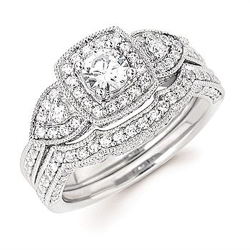 Ladies 14 karat White Gold Wedding Set with Center Stone 0.33tw Round H/I I1 Diamonds
