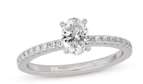 Ladies 14 Karat White Gold Engagement Ring with 0.51tw Oval G/H SI2 Diamond 0.26tw Round G/H SI2 Diamonds = .77 TDW