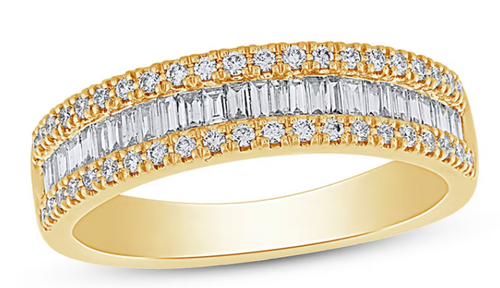 Ladies 14 Karat Yellow Gold Band with 1.18tw Baguettes and Rounds H/I SI2 Diamonds