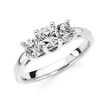 Ladies 14 Karat White Gold Three Stone Diamond Ring 0.72tw Round H/I SI2 Diamonds Size 6.5