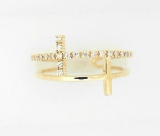 Ladies 14 Karat Yellow Gold Diamond Cross Ring With = 0.12Tw Round H/I Si2 Diamonds Size Is Open Adjustable
