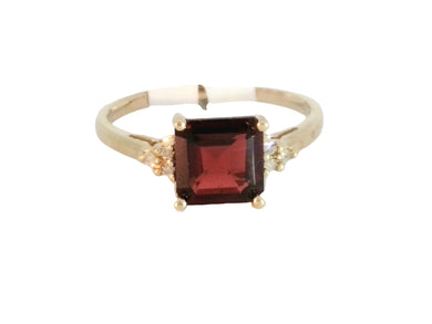 Ladies 14 Karat Yellow Gold Fashion Ring With 0.02Tw Round H/I Si2 Diamonds And 1.80Tw Princess Garnet