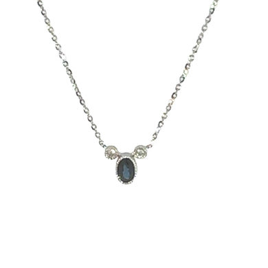 Ladies 14 Karat White Gold Fashion Necklace With 0.04Tw Round H/I Si2 Diamonds And 0.27Tw Oval Sapphire 18" Adjustable Chain