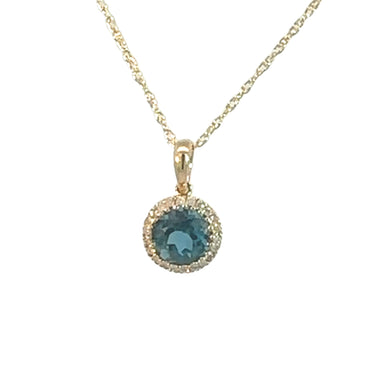 Ladies 14 Karat Yellow Gold Diamond Fashion Necklace With 0.10Tw Round H/I Si2 Diamonds And 1.28Tw Round London Blue Topaz 18" Chain