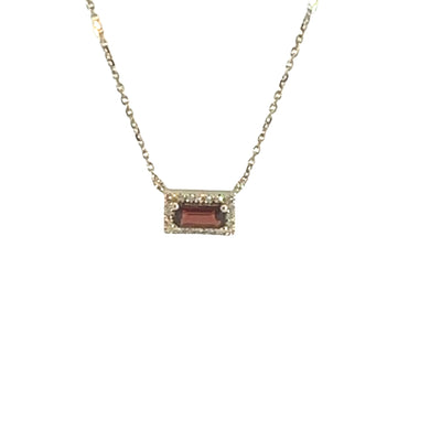 Ladies 14 Karat Yellow Gold Diamond Fashion Necklace With 0.05Tw Round H/I Si2 Diamonds And 0.40Tw Emerald Garnet 18" Adjustable Chain
