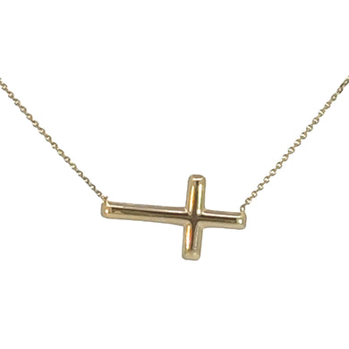 Ladies 14 Karat Yellow Gold Sideways Cross Necklace 17"
