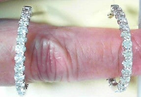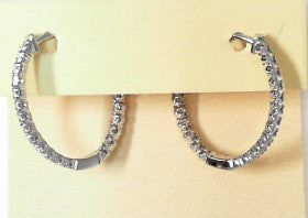 Ladies 14 Karat White Gold Diamond Oval Large Inside/Outside Hoop Earrings With 3.00Tw Round H/I Si2 Diamonds