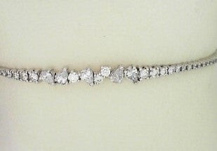 Ladies 14 Karat White Gold Diamond Flexible Bangle With Pear and Round Shapes = 0.74Tw Round G/H SI2 Diamonds 6.75"