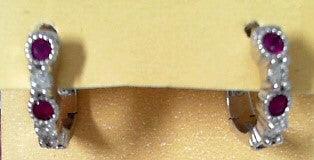 Ladies 14 Karat White Gold Diamond Hoop Earrings With 0.37Tw Round H/I SI2 Diamonds And 0.79Tw Round Rubes
