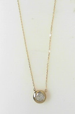 Ladies 14 Karat Yellow Gold Diamond Bezel Set Pendant With 0.41Tw Round H/I Si2 Diamond 18" Chain