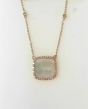 Ladies 14 Karat Yellow Gold Fashion Necklace With 0.26Tw Round G/H Si2 Diamonds And 2.10Tw Cushion Mother Of Pearl 18" Chain