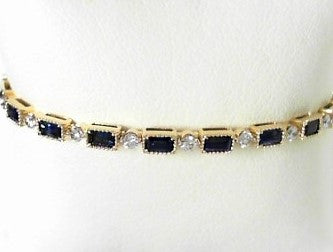 Ladies 14 Karat Yellow Gold Flexible Bangle Bracelet With = 2.28Tw Emerald Cut Sapphires And = 0.67Tw Round G/H SI2 Diamonds 6.75"
