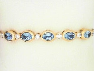 Ladies 14 Karat Yellow Gold Flexible Bangle Bracelet With = 2.14Tw Oval Aqua Marine And = 0.67Tw Round G/H SI2 Diamonds 6.50"
