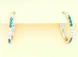 Ladies 14 Karat Yellow Gold Hoop Earrings With = 0.20Tw Emerald Cut Sapphires And = 0.14Tw Round G/H SI2 Diamonds