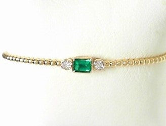 Ladies 14 Karat Yellow Gold Flexible Bangle Bracelet With = 0.33Tw Emerald Cut Emerald And = 0.14Tw Round G/H Si2 Diamonds 6.75"