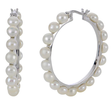 Ladies Sterling Silver 8-8.5MM Freshwater Cultured Pearl 25MM 3/4 Hoop Earring