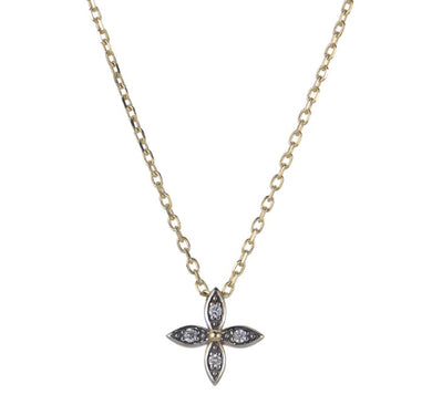Ladies 14 Karat Yellow Gold Diamond 4 Petal Necklace With 0.02Tw Round G/H Si2 Diamonds With 18" Adjustable Chain