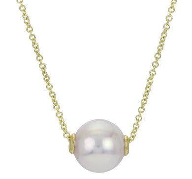 Ladies 14 Karat Yellow Gold Akoya 18" Solitaire Necklace 8MM with 18" Chain