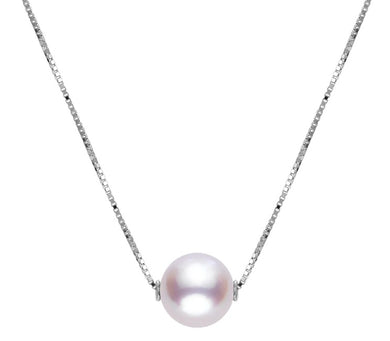 Ladies 14 Karat White Gold 4-4.5MM / 9-9.5MM AA FWCP Necklace 18" Adjustable Chain