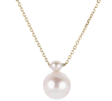 Ladies 14 Karat Yellow Gold 4-4.5MM / 9-9.5MM AA FWCP Necklace 18" Adjustable Chain