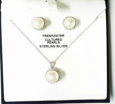 Ladies Sterling Silver FWP Button/Diamond Earring And Pendant Set with Halo Of 0.16.5 Pts Of Diamonds