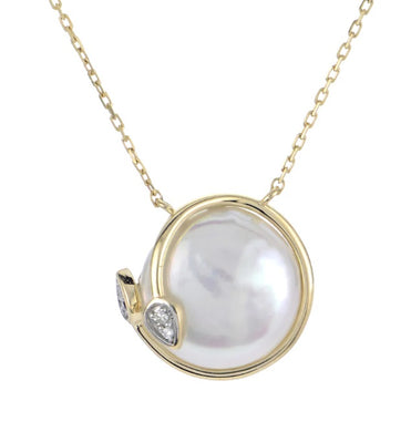 Ladies 14 Karat Yellow Gold 11-12 MM Coin Pearl And Diamond Necklace 18"